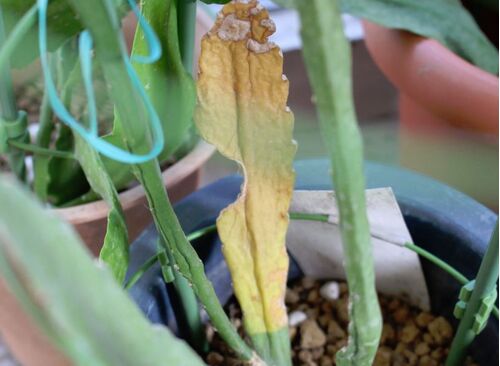 クジャクサボテンムーンウォーク 油断してたらすぐ枯れようとするー 枝が4年目くらいっぽいから寿命かなぁ 先週が27℃とかだったのに今日はまた37℃まで上がるらしい いい加減涼しくならないとサボテン枯れそうなんだけど 強風に煽られて枝がだいぶダメージを…